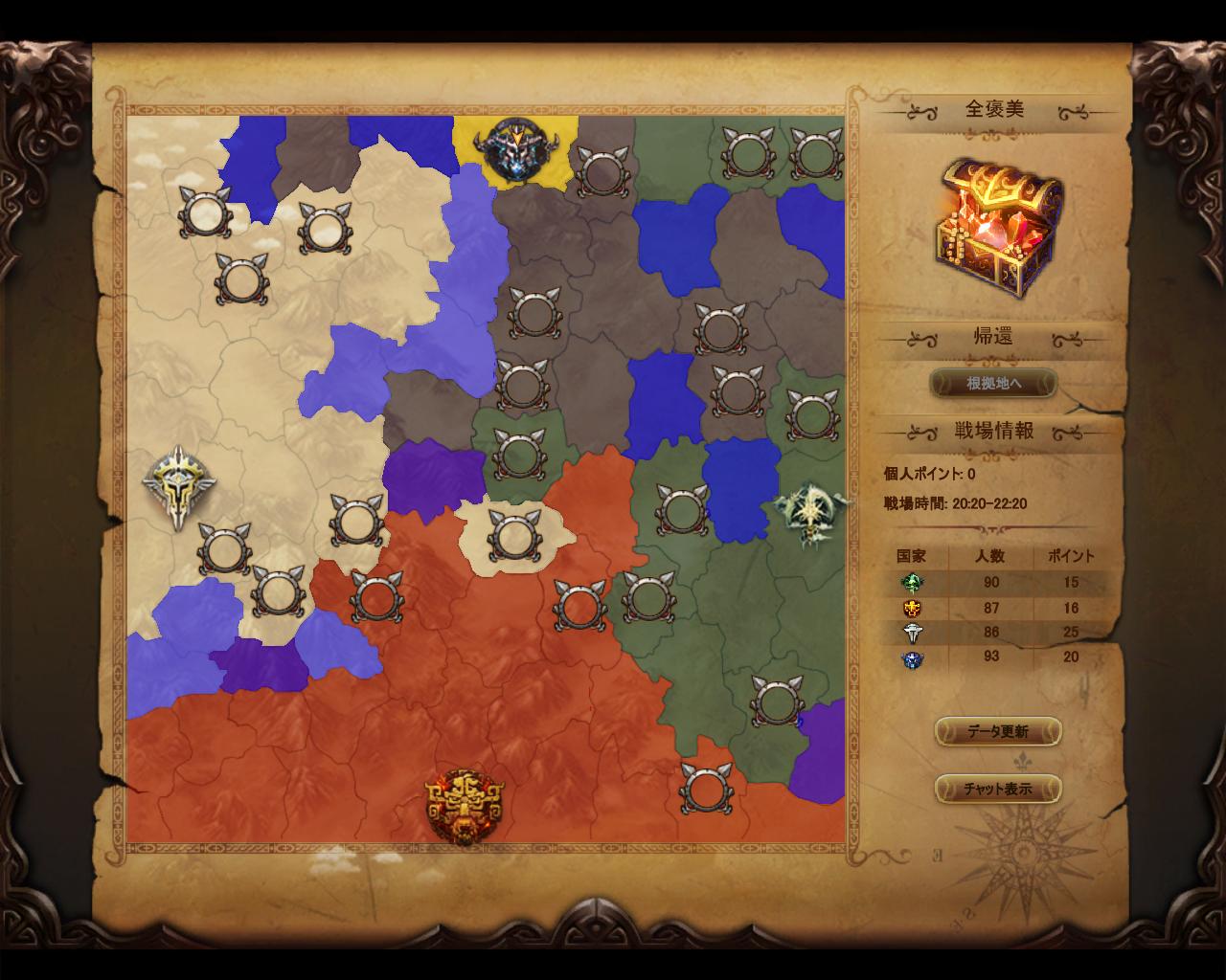 国戦はPVPと旗運搬ゲームが両方楽しめるコンテンツですね。